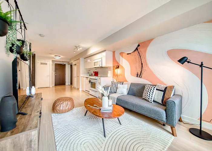Stylish Downtown Toronto Suite With Free Parking se trouve à seulement 1 km du Parc Tommy Thompson et extrêmement proche de Site historique national de Fort York. La résidence spacieuse est également nichée à 30 minutes à pied des Dundas Square.